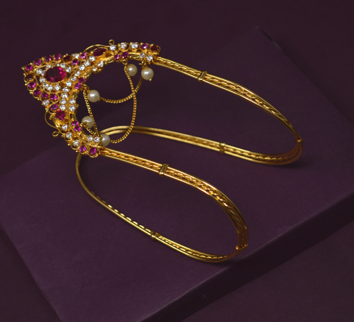 Finish: Plain Gold Type: Adjustable Occasion: Traditional This product is made of electro-plated brass alloy and imitation stones.