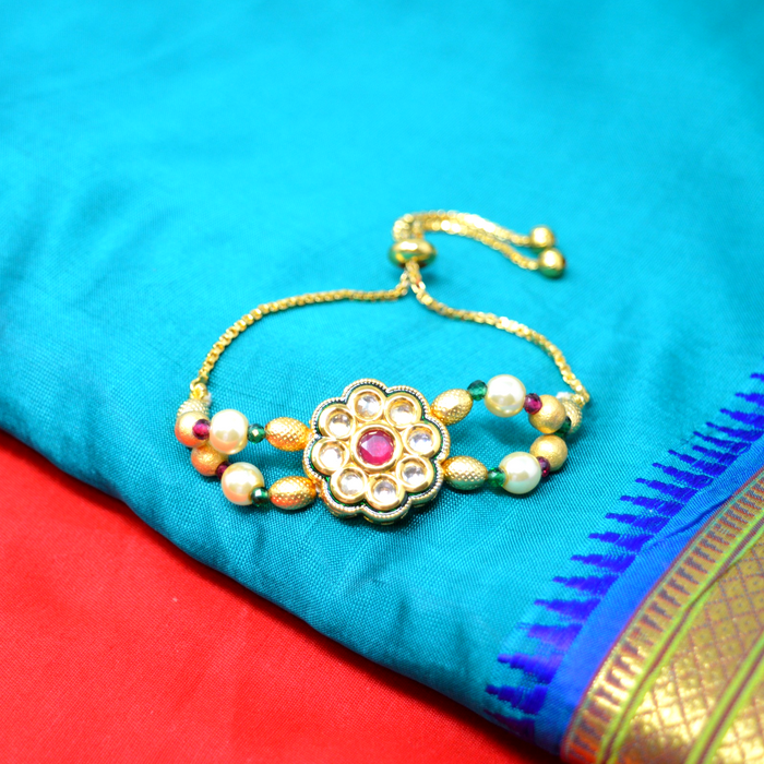 Click to expand Tap to zoom Red Green Stone & Moti Kundan Bracelet Rs. 500 1 2 3 4 5 6 7 8 9 10+ Quantity Quantity Add to cart This item is a recurring or deferred purchase. By continuing, I agree to the cancellation policy and authorize you to charge my payment method at the prices, frequency and dates listed on this page until my order is fulfilled or I cancel, if permitted. Finish: Kundan Type: Adjustable Occasion: Traditional This product is made of electro-plated brass alloy and imitation stones.