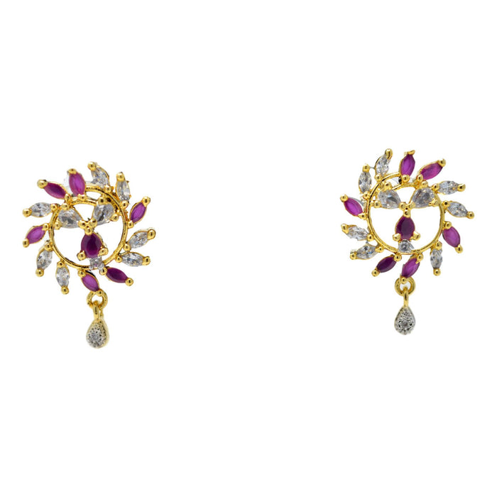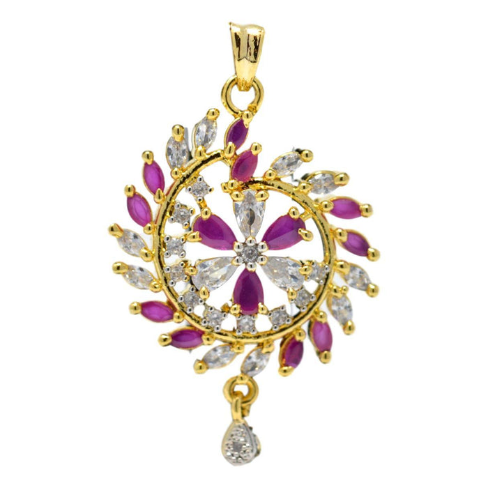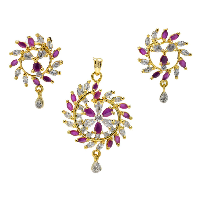 American Diamond with Pink Stone Pendant Set