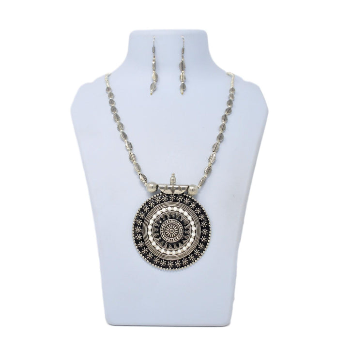 Black & White Pendant Oxidised Necklace Set