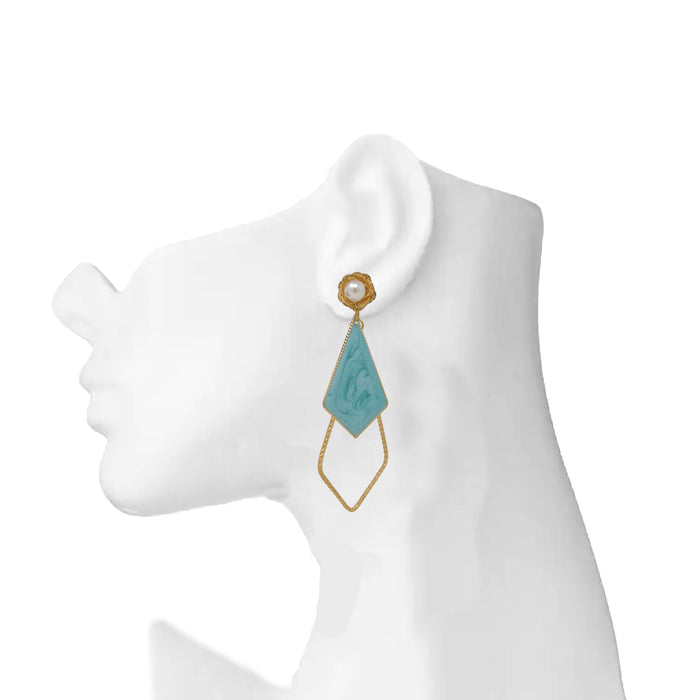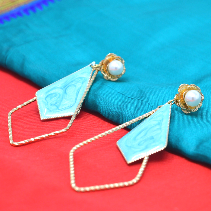 Modern Earrings Pearl with Blue Stone Veneer