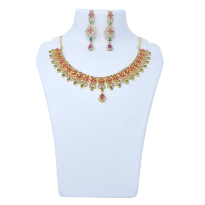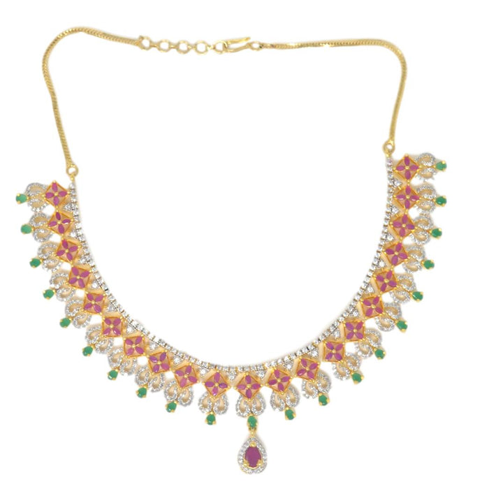 Red,Green & White Stone Necklace